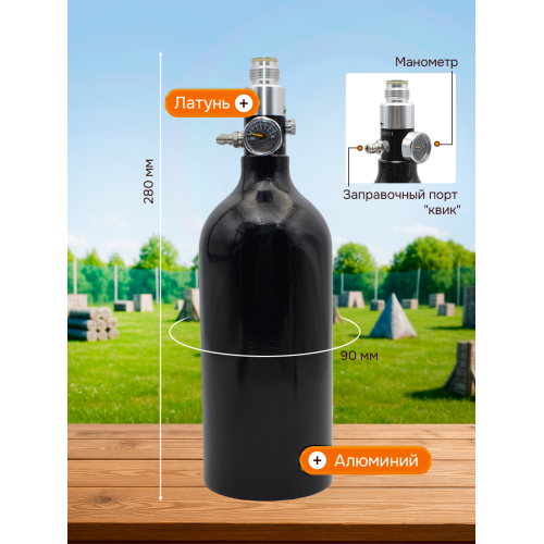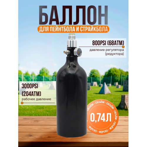 Баллоны c регулятором давления применяются в Пейнтболе, страйкболе  и PCP пневматики. Зарекомендовали себя как надежный источник сжатого воздуха! Материал баллона алюминий, толщина стенки колбы не менее 6 мм. Встроенный регулятор давления, редуктор, делает использование данных баллонов более удобными и практичными!